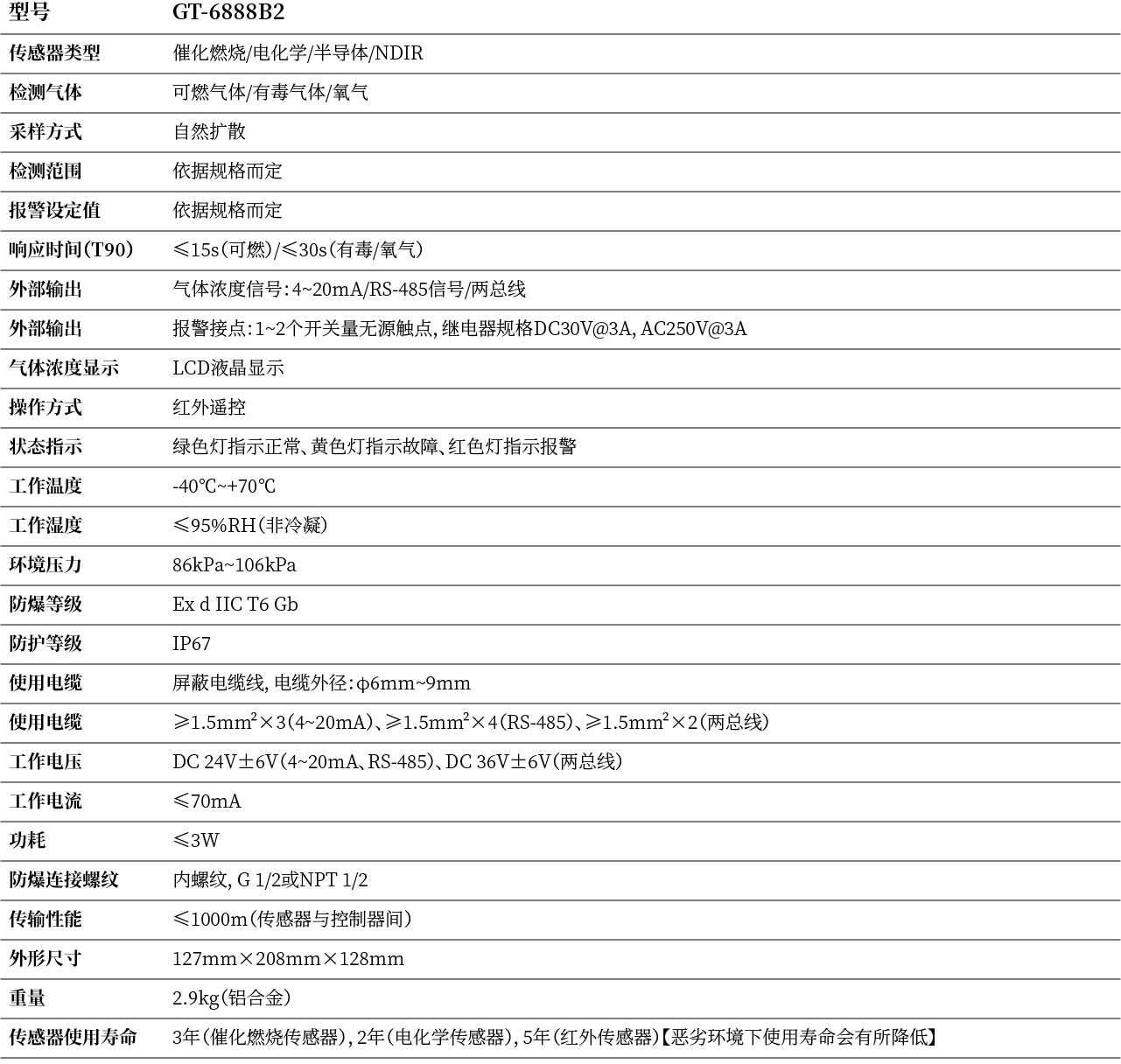 ·防爆等级 Ex d IIC T6 Gb